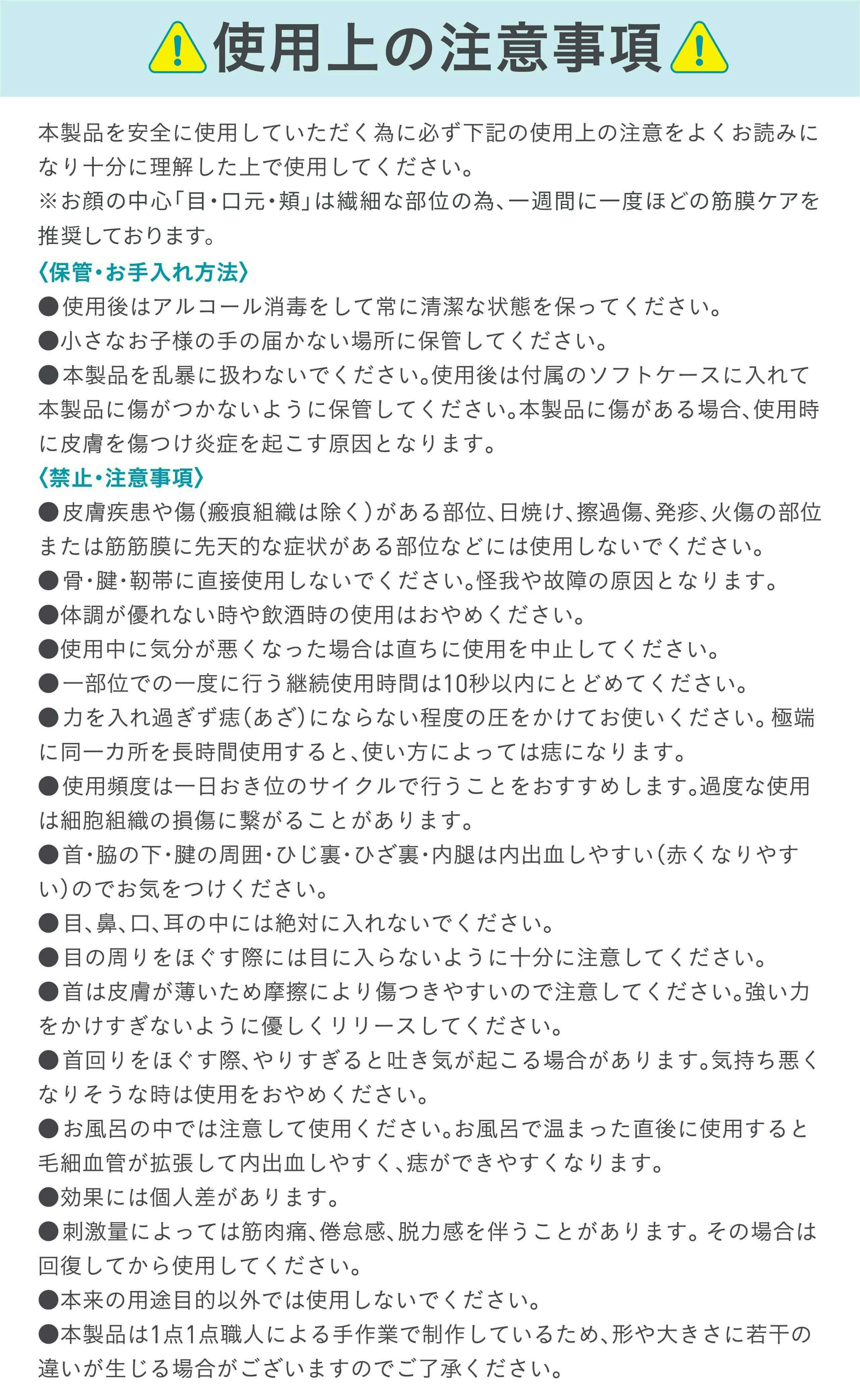 ・お肌に異常が生じていないかよく注意して使用してください。傷やはれもの、しっしん等、異常のある部位にはお使いにならないでください。