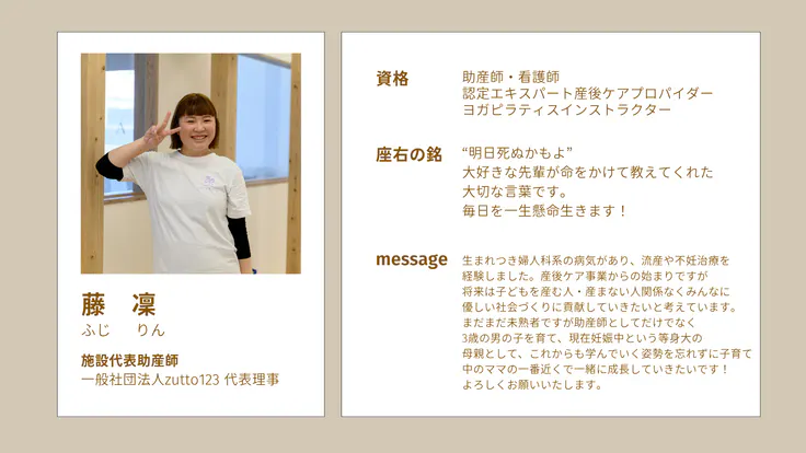 産前産後ケア施設『zuttoぎゅっと。』代表の藤凜(ふじりん)です🍎