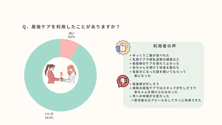 アンケートを実施したことで、福井で子育てをするママの思いや産後ケアの実態が見えてきました。