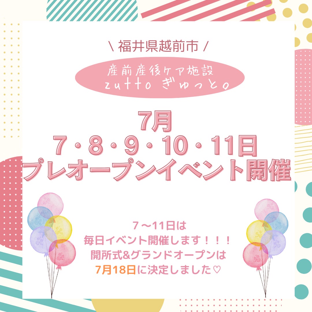 2025/07/16 10:00【プレオープンイベント終了のご報告】7月7日〜11日の5日間、プレオープンイベントを開催し、イベント期間中に総勢43組の親子にお会いすることができました!!施設は準備中の箇所もある状態ですが、笑顔でイベントに参加されるママや楽しく遊ぶ赤ちゃんのお顔を見れてスタッフ一同とても嬉しく思っています。カフェスペースも準備が整い、カフェインレスのコーヒーをゆっくり飲みながらママ同士の交流の場としても活用していただくことができ今後ももっとたくさんのママ達に使っていただけたらなぁと思っております。プレオープンイベントの様子は写真でご紹介いたします!※写真の掲載については許可をいただいております。プレオープンイベントにお越しいただいた皆様、本当にありがとうございました。次回は7月18日の開所式の様子をご報告させていただきたいと思います。今後とも産前産後ケア施設zuttoぎゅっと。をよろしくお願いいたします。 もっと見る