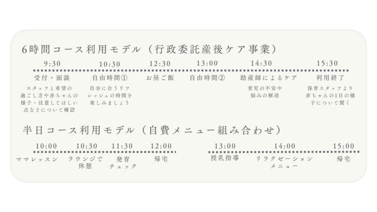 産後ケア事業は通所型(6時間と1時間)の受け入れを行います。