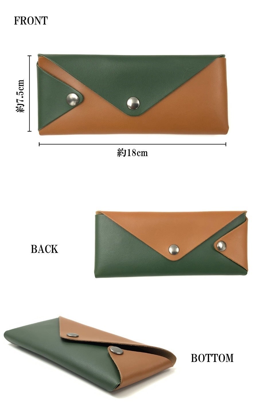 ※畳んだ状態のサイズ▶タテ約15cm×ヨコ約15cm×厚み約3cm(革の種類により多少異なります。)