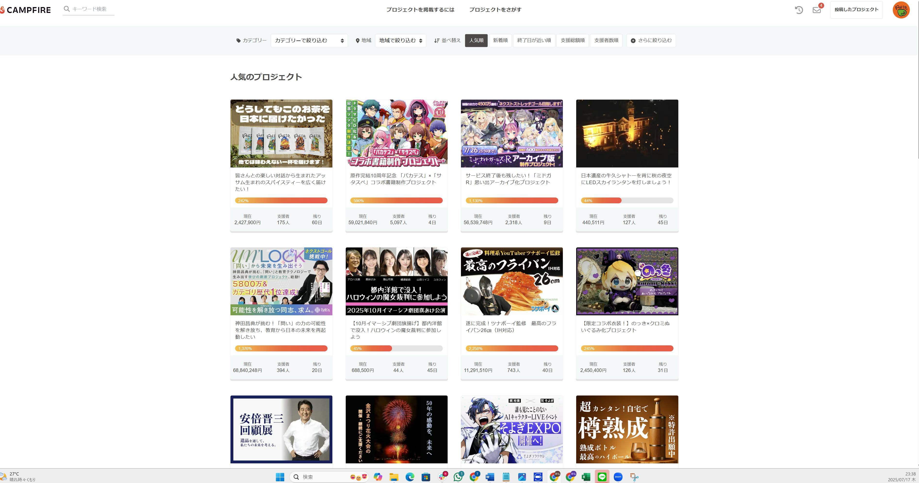 CAMPFIREの全プロジェクト中でピックアップされました!!