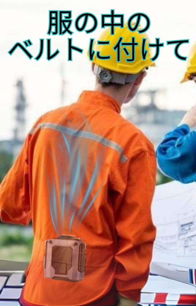 腰から背中に向けて、上方向に風を送る設計。 Tシャツの中を風が通り抜け、体幹を中心に効率よく涼しくなれます。 「なんとなく涼しい」ではなく、「ちゃんと快適」な使用感。