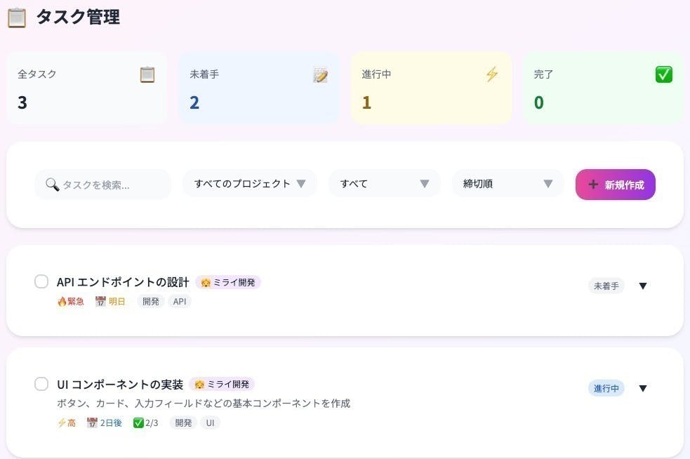 - 💼 タスク管理:そんな妹ちゃんがタスクも管理してくれます