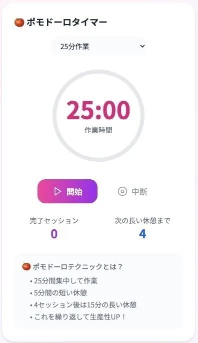 - ✅ ポモドーロ・タイマー