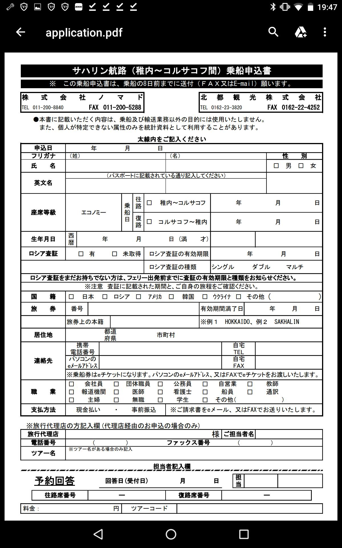 また、サハリン航路も申し込みをして予約の返事待ち中です。
