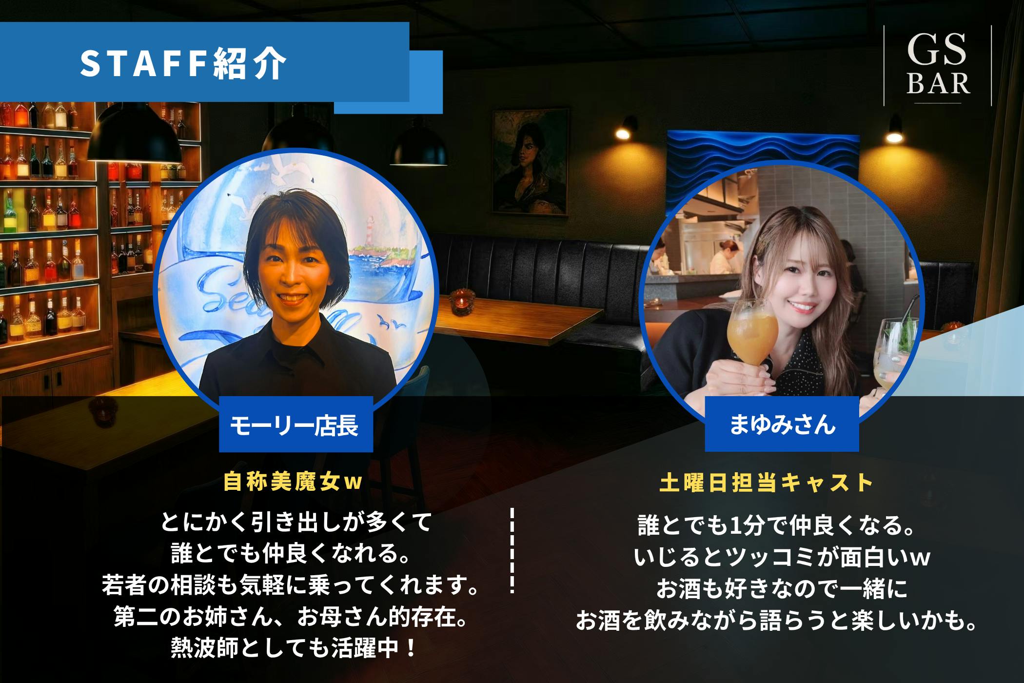 GS BARでは、男女合わせて計4名のスタッフで皆様のご来店をお待ちしております!