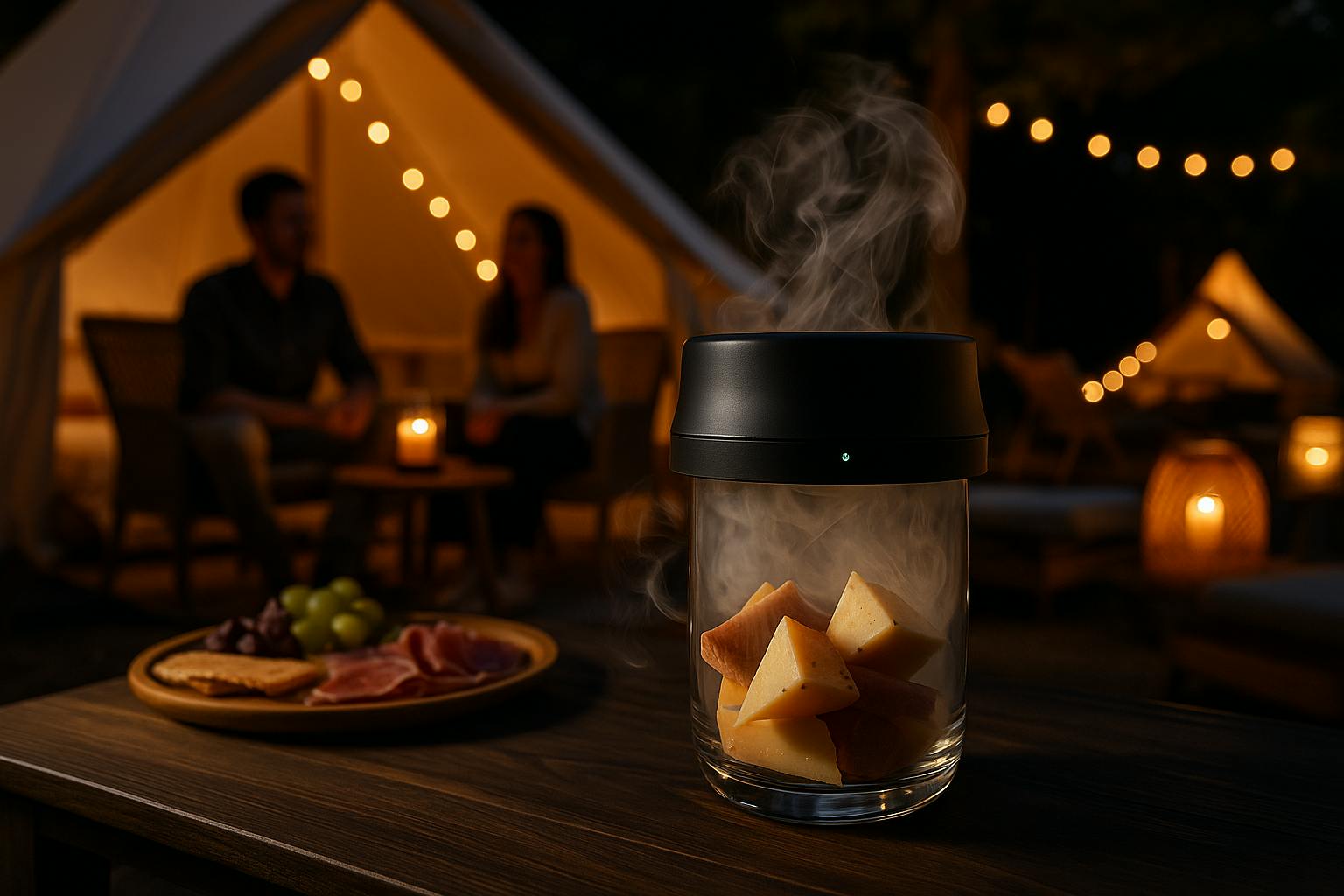 ハイボールやポテチにスモーキーな香りをまとわせ、自然との時間を特別に演出します。