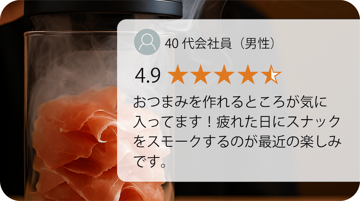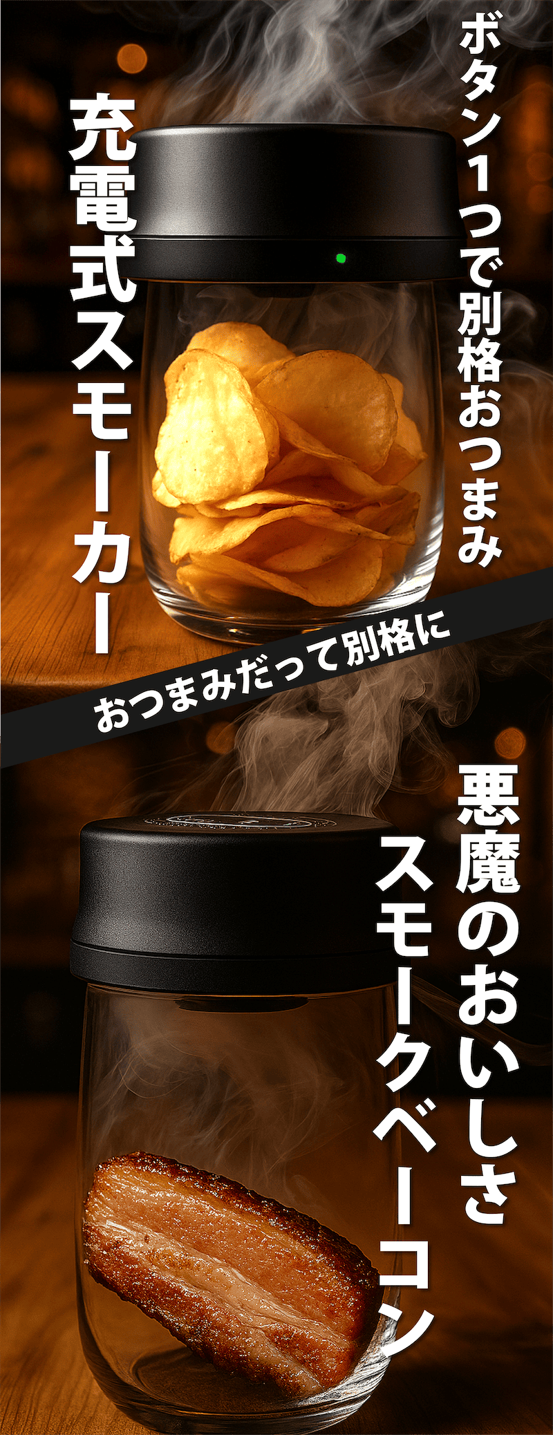 ポテトチップス、生ハム、チーズ、サーモン軽くスモークするだけで、「おっ!」と言われる一品に。