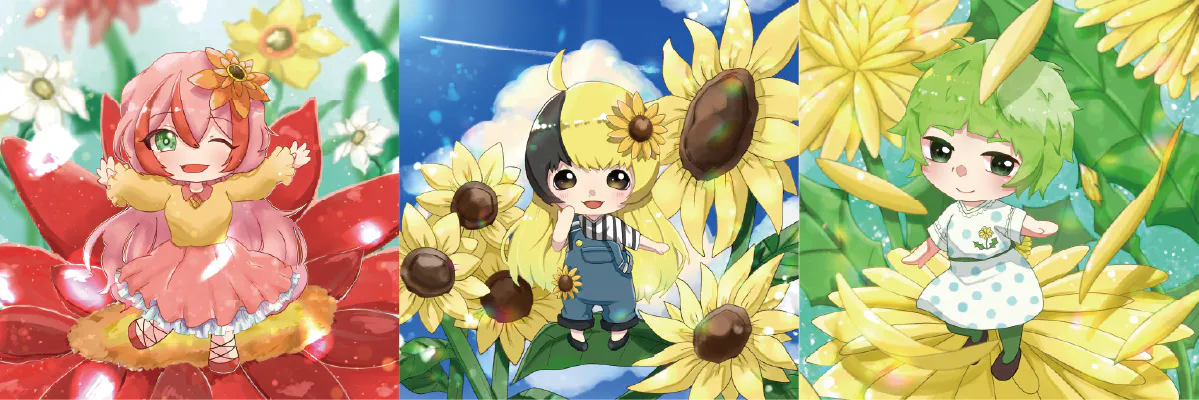 花の妖精たちが暮らす花の世界を描いたアニメを作りたい!!自然と触れ合う機会が少なくなった現代だからこそ可愛らしいキャラクターたちを通して自然の大切さ・美しさを届けたい!そんな想いから作られた企画が『HANANOCO PROJECT』です。
