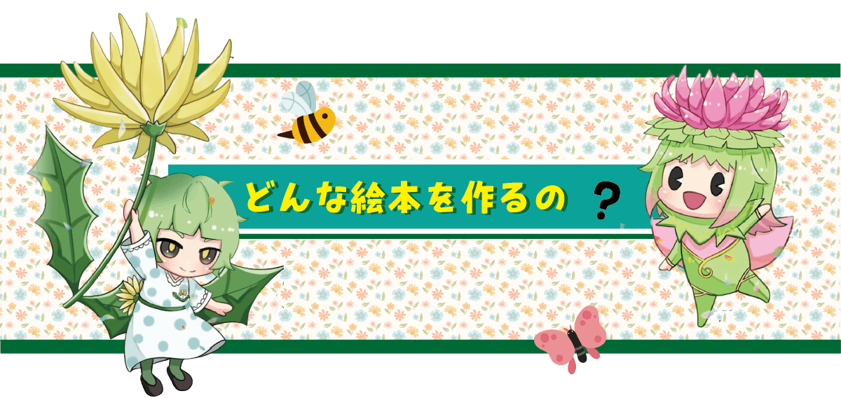 私たちの幼少時代に比べ、現代の子供たちは花と触れ合うきっかけが少なくなってきました。デジタル機器の普及・地球温暖化・都市開発の拡大など様々な要因がありますが、今後この流れを止めることはできないと感じています。私たちはこの絵本を通して子供たちが花に興味を持ち、自然を大切に思う心を育てるきっかけになってほしいと考えてます。