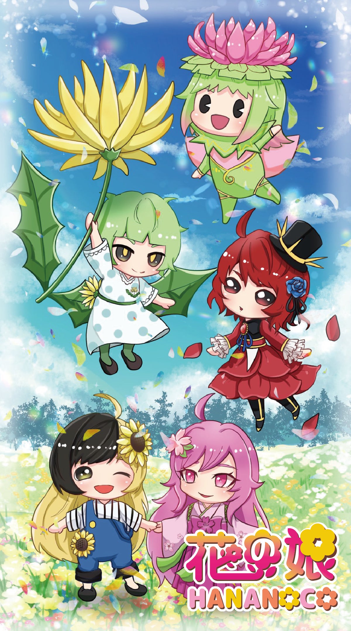 花の妖精たちが暮らす花の世界を描いたアニメを作りたい!!自然と触れ合う機会が少なくなった現代だからこそ可愛らしいキャラクターたちを通して自然の大切さ・美しさを届けたい!そんな想いから作られた企画が『HANANOCO PROJECT』です。
