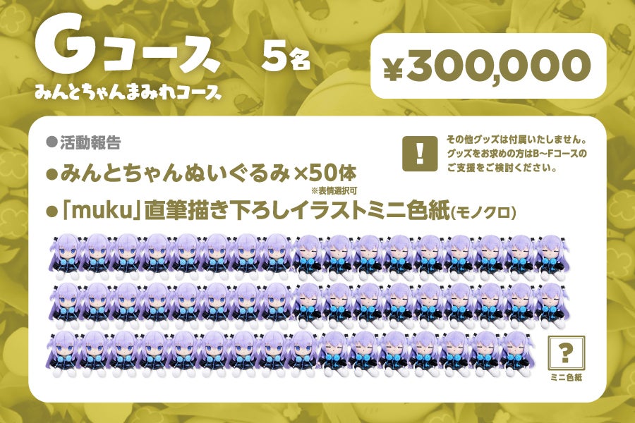 Gコース:みんとちゃんまみれコース 300,000円(5名様限定)