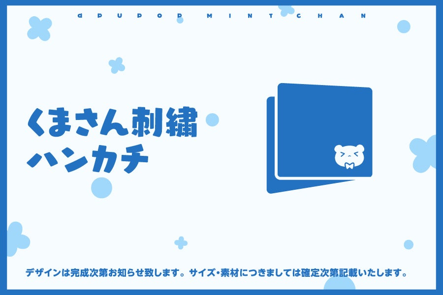 イラストレーター「muku」おなじみの「くまさん」をあしらったオリジナルハンカチとなります。