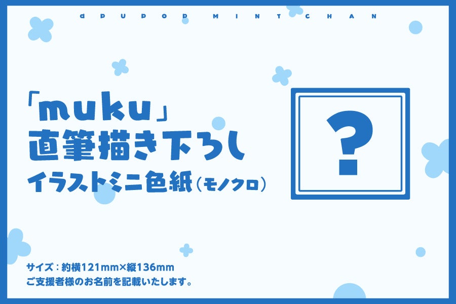 イラストレーター「muku」本人が描き下ろすイラストミニ色紙となります。