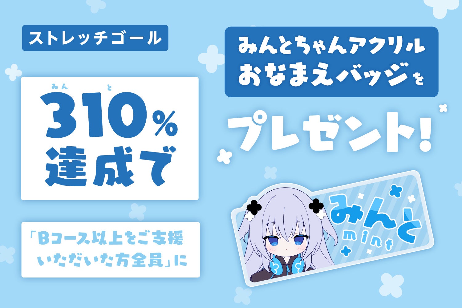 2026/03/20 21:00こちらの活動報告は支援者限定の公開です。ストレッチゴール:みんとちゃんアクリルおなまえバッジのデザイン公開!