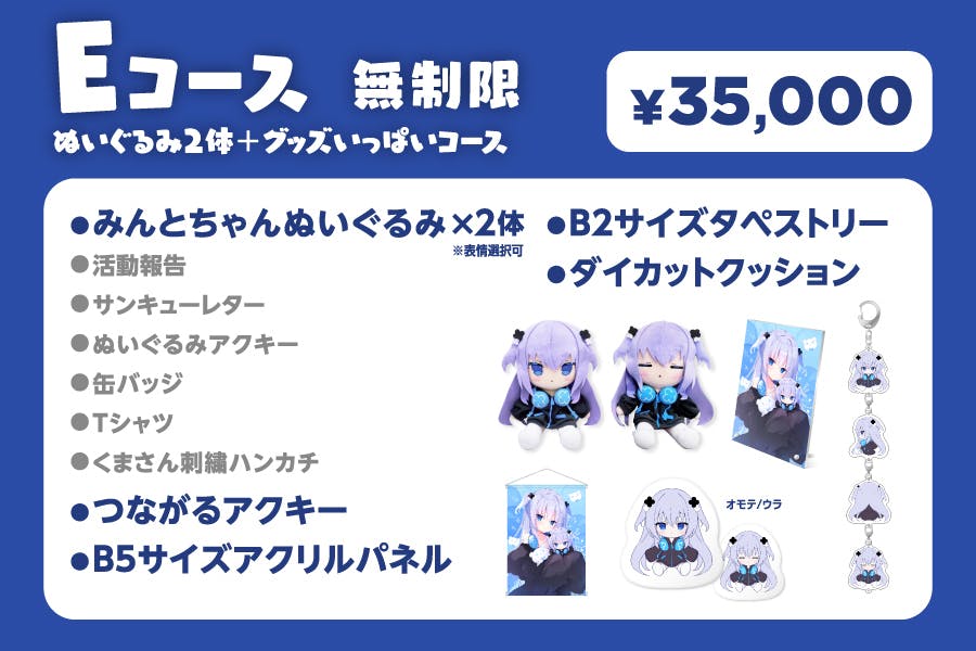 Eコース:ぬいぐるみ2体+グッズいっぱいコース 35,000円