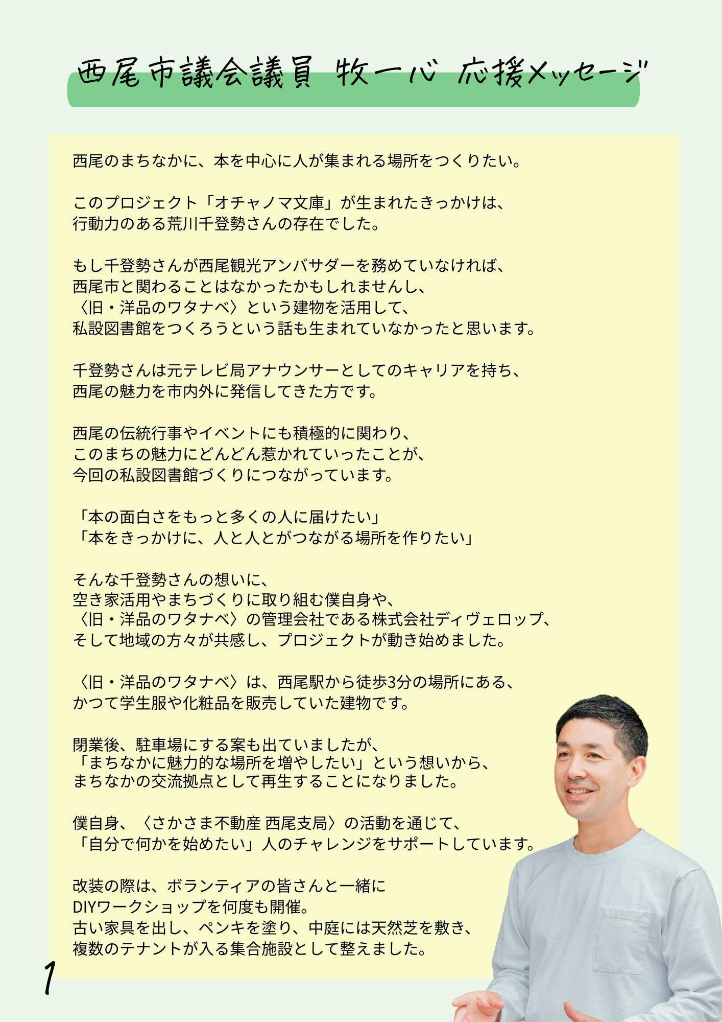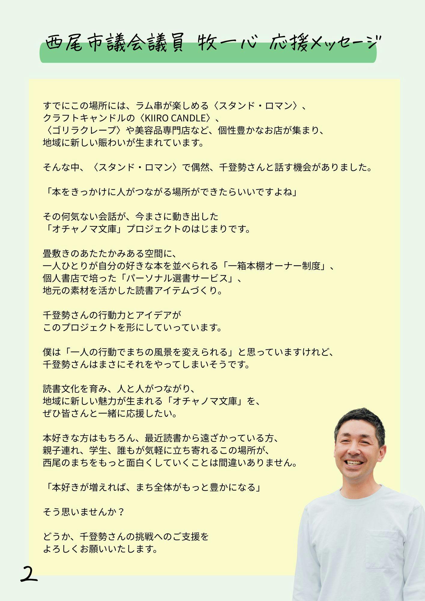 西尾市議会議員 牧一心様から応援メッセージをいただきました!