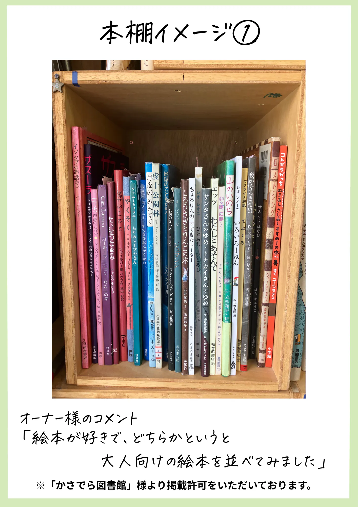 【お礼のメッセージ&館長おすすめ書籍タイトルのお伝えor絵本選書】