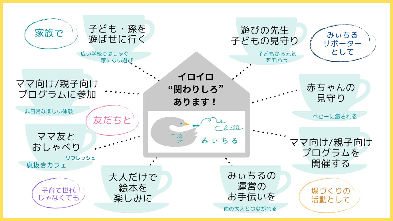 みぃちるでは、いろいろな関わり方、のびしろのある"関わりしろ"をご用意していきます、