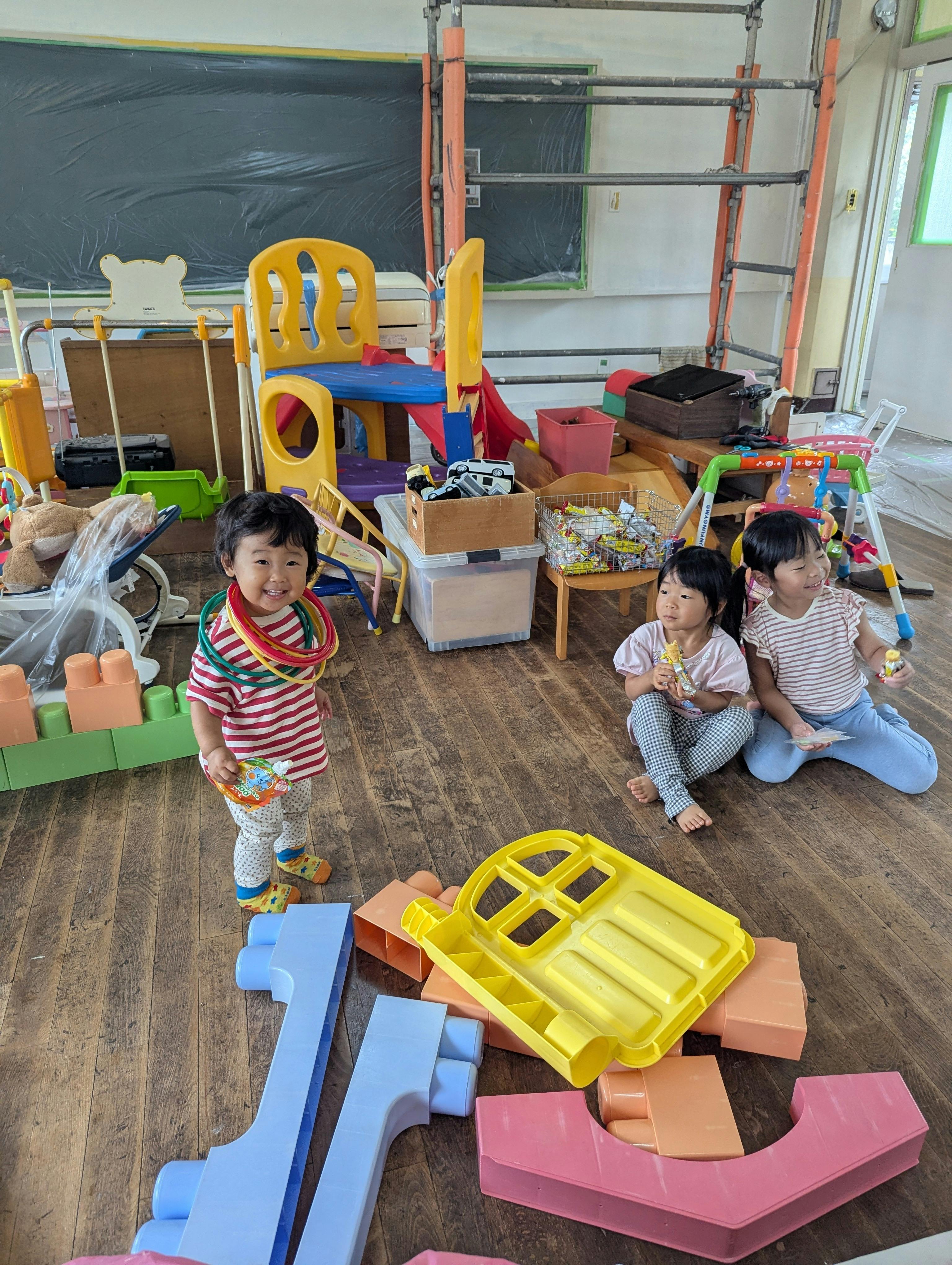 子どもたちは手伝いに飽きると、遊びながら大人の作業を待っていてくれました。気づけばうちの娘とメンバーの姉妹ちゃんが仲良しに。嬉しい!