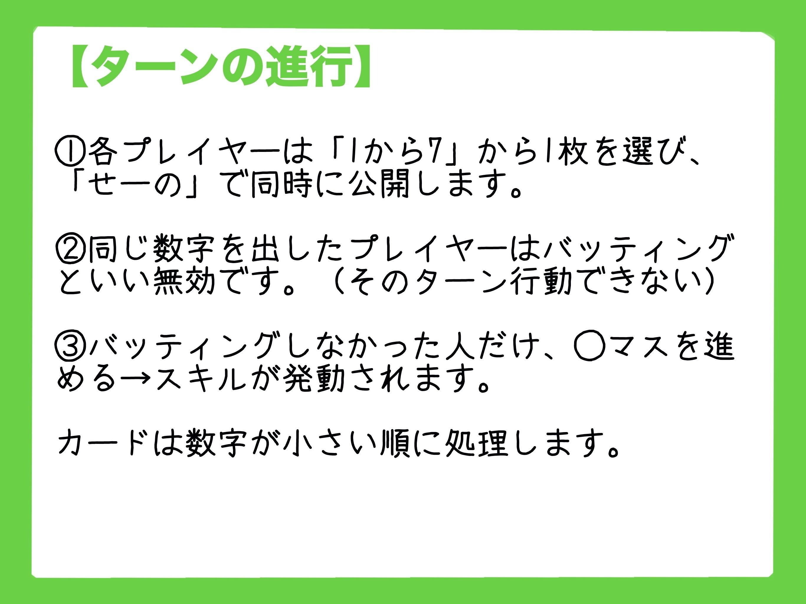 カードに進むマスの数や、スキルなどすべて記載せれており、始めての方でもカード見ているだけでなんとなくルールがわかります。
