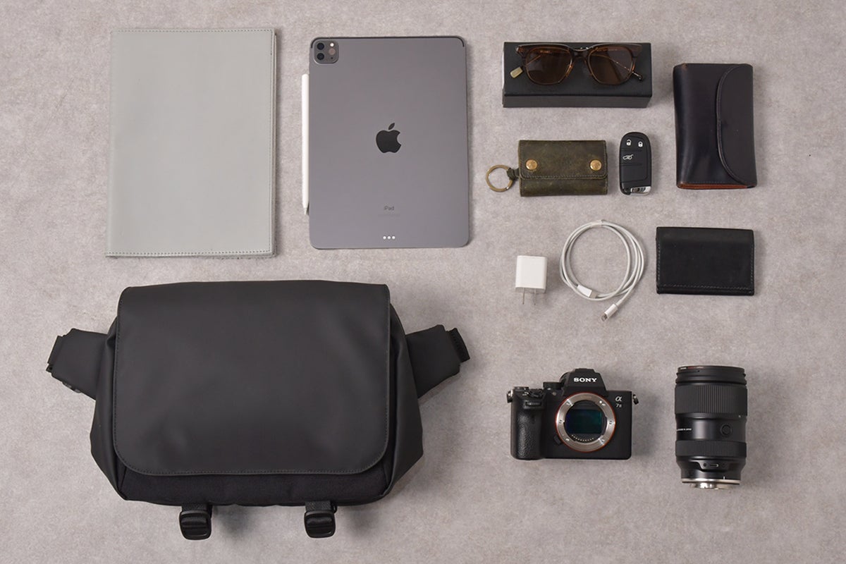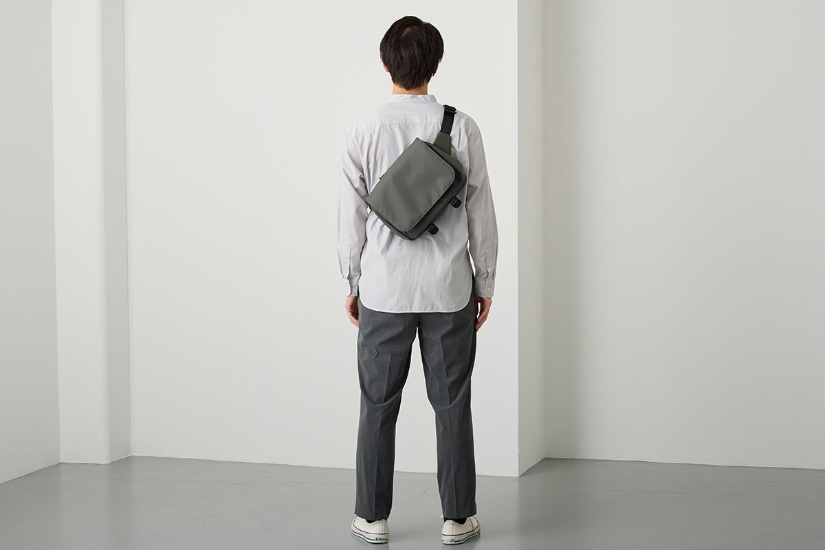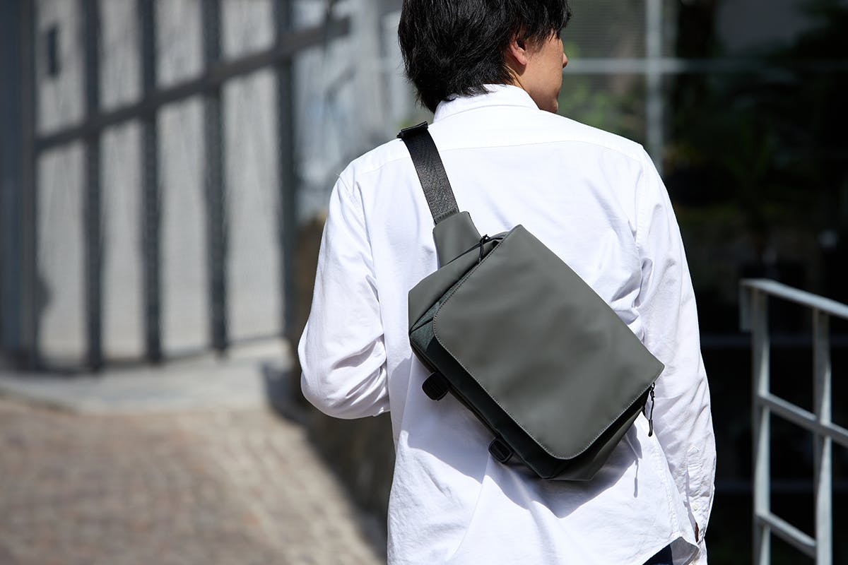 傷に強くて汚れても簡単に綺麗になる。大人の日常使いに最適なスリングバッグ。