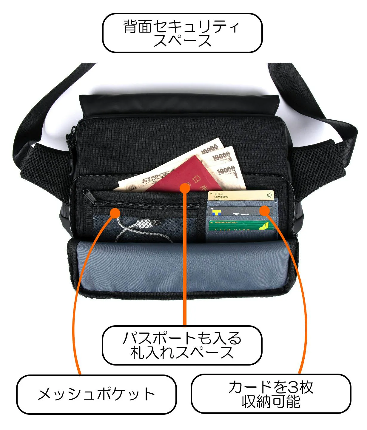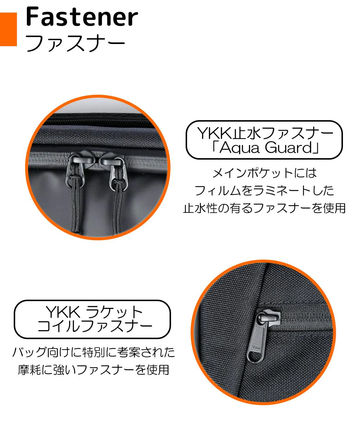 独立した収納スペースと止水ファスナーでデバイスをしっかり保護します