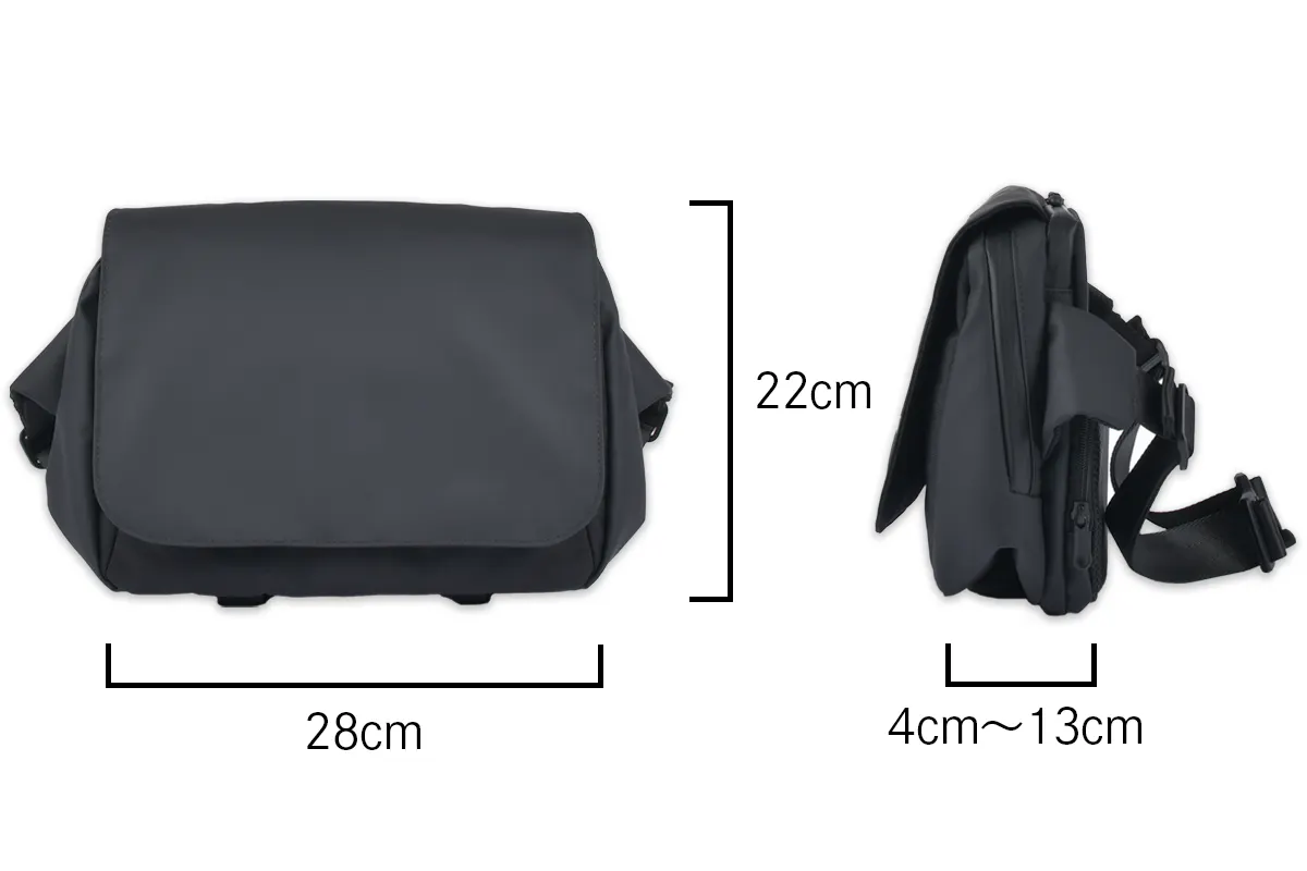 A:通常時のマチ幅は4cmですが、底部分のベルトを調整することで最大13cmまで拡張できます。