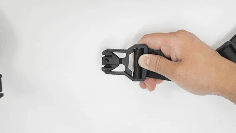 従来のバックルの様に力を入れなくても簡単に脱着できるバックルになっています。