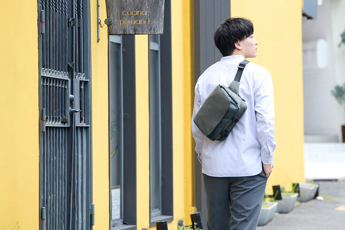 傷に強くて汚れても簡単に綺麗になる。大人の日常使いに最適なスリングバッグ。