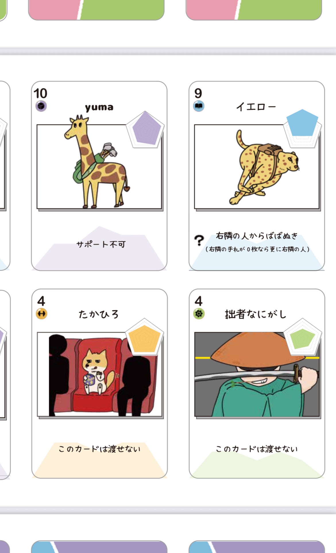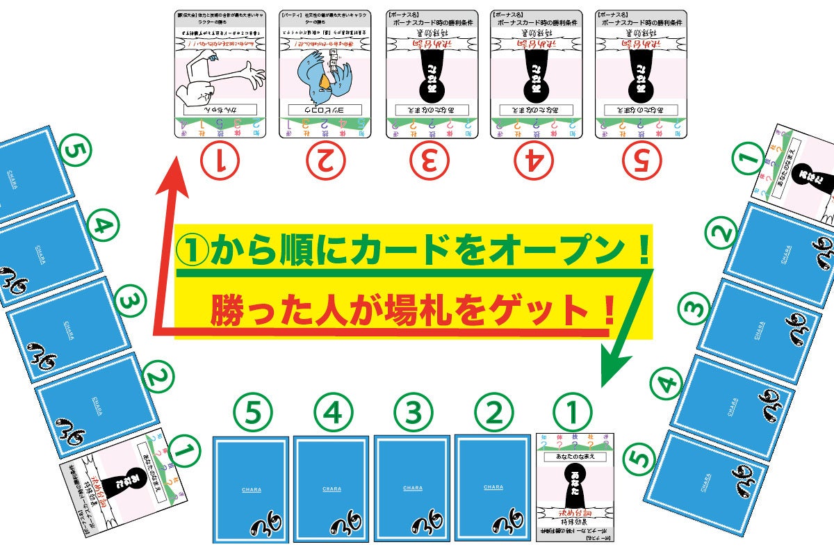 支援者一人ひとりが、自分自身をモチーフにしたキャラクターとしてカード化され、それぞれの「得意」「不得意」を数値化した能力で勝負する、個性あふれる完全オリジナルゲームです。