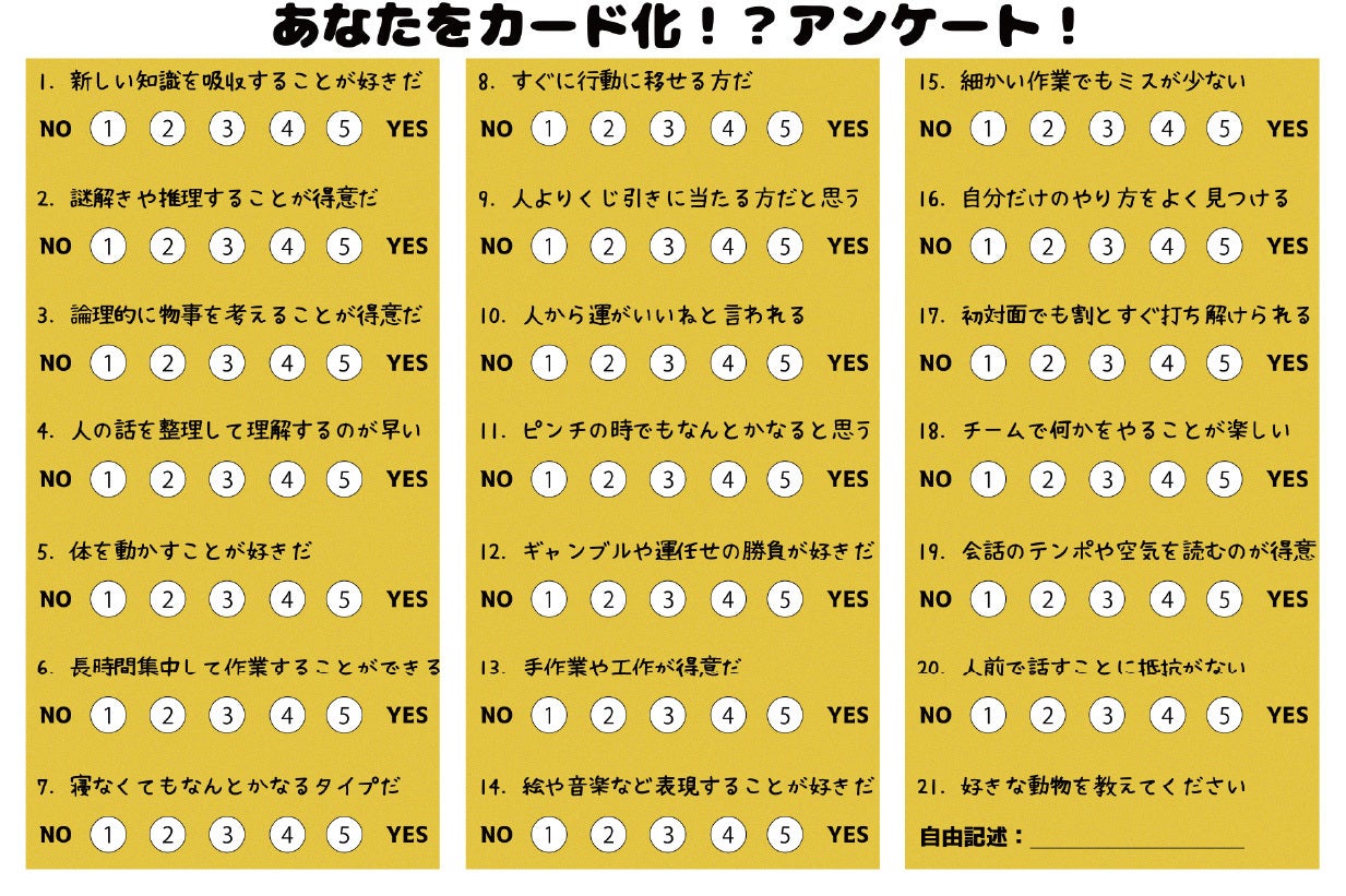 【アンケート(仮)】このようなアンケートからあなたのカードのステータスやデザインを決定します!