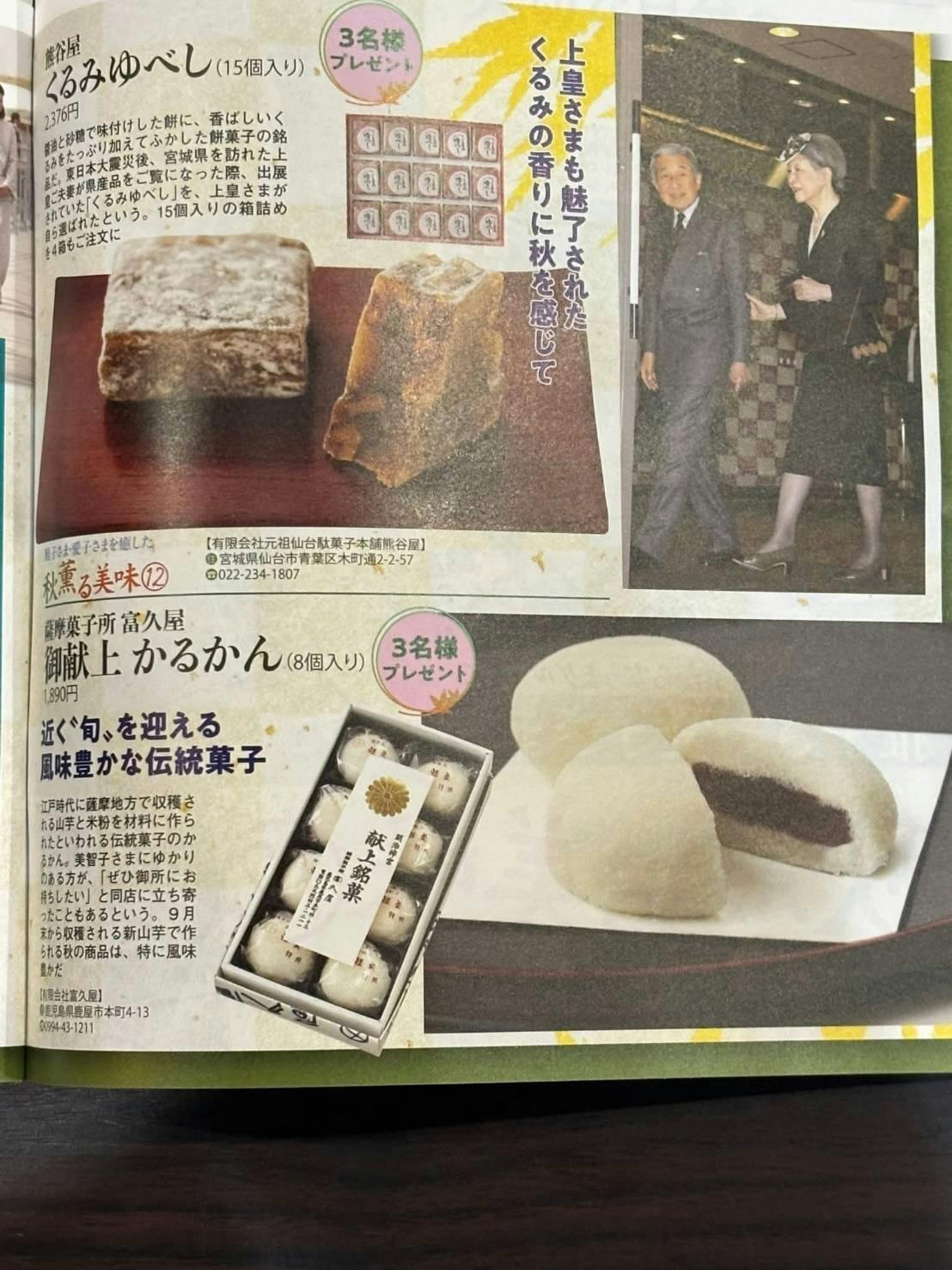 江戸時代に薩摩地方で収穫される山芋と米粉を材料に作られたといわれる伝統菓子のかるかん。美智子さまにゆかりのある方が、「ぜひ御所にお持ちしたい」と同店に立ち寄ったこともあるという。