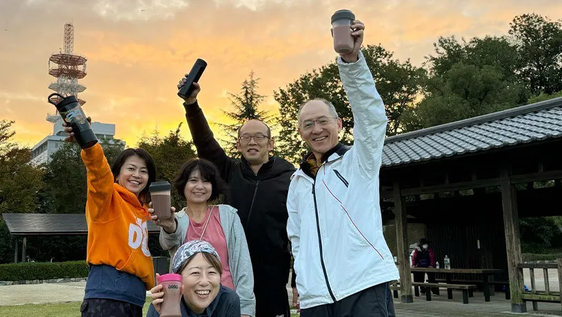 2025/07/13 12:13毎月1回!朝6時から松山城に登る朝活FITを行っています。お城山に登り、6:30〜はラジオ体操☆そして栄養たっぷりのシェイクを皆んなで飲むのですが、今回は暑いので、氷とミキサー持参でスムージーに!美味しい〜!と笑顔が溢れました!最近は皆んなで懐かしのグリコをして遊んでから下山しています☆皆さんも一緒に朝活FITしませんか〜? もっと見る