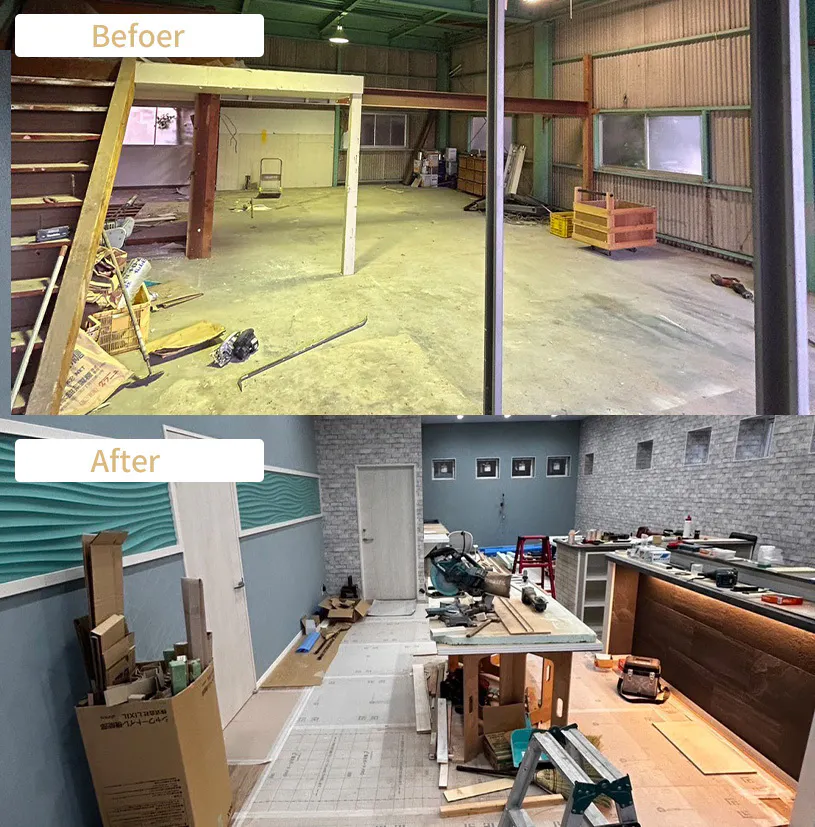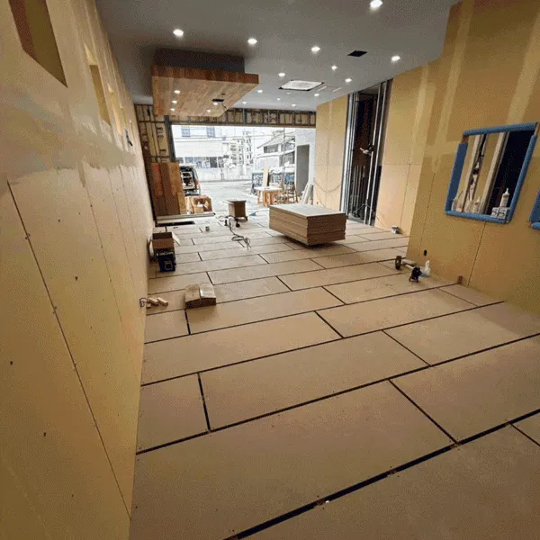 現在、内装工事が進んでおり着々と店内ができあがっております。