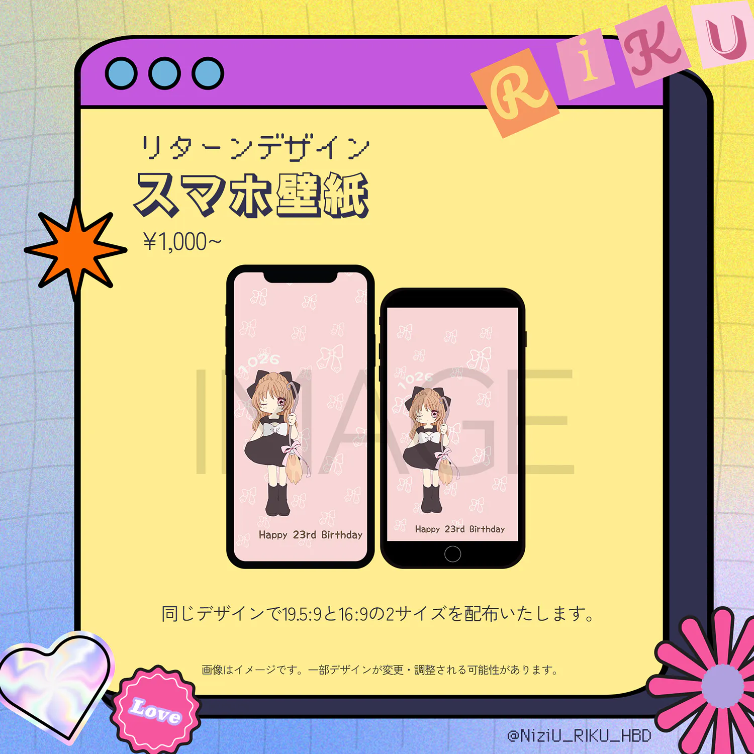 ◆リクちゃんのセンイルイベントで店舗に掲載するポスターにお名前を掲載します。(リクマユイベントのポスターにはお名前の掲載はありません)