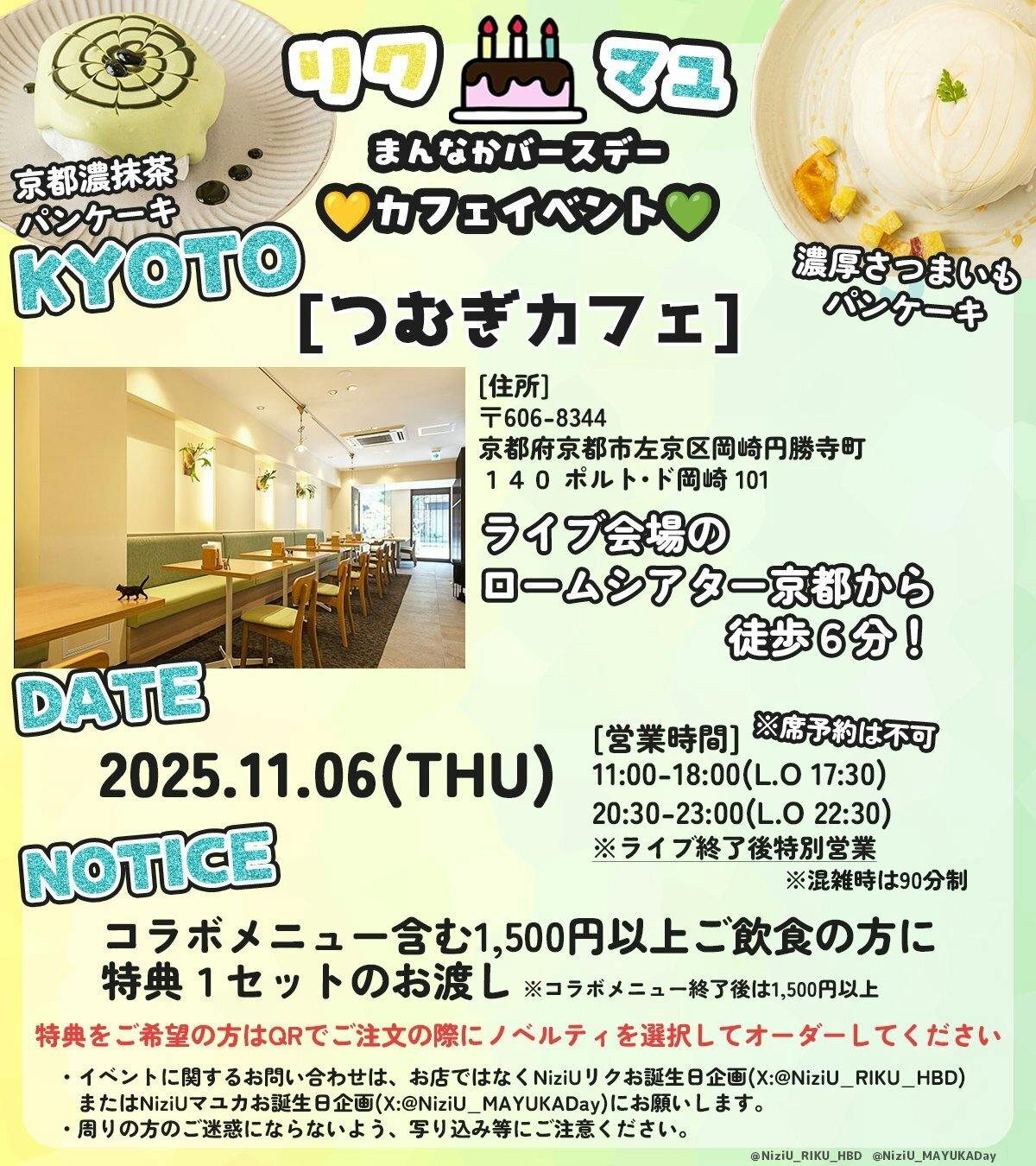 マユカお誕生日企画様(@NiziU_MayukaDay)とのコラボ企画として東京エリアと京都エリアでコラボイベントを開催する事となりました。