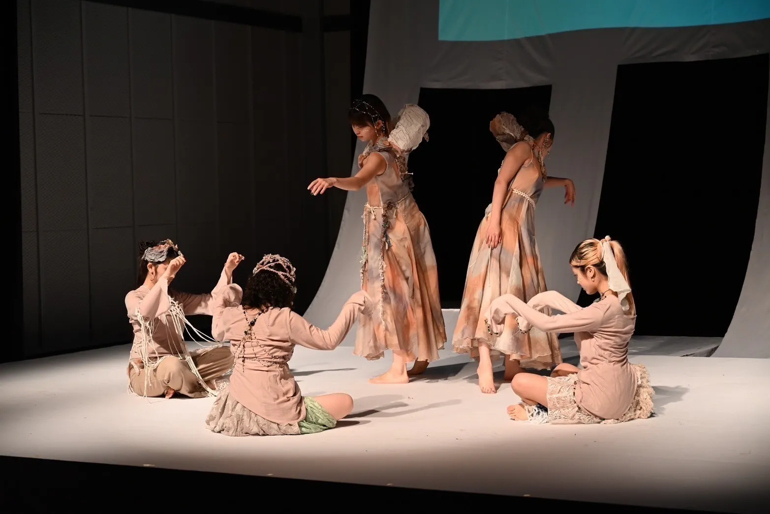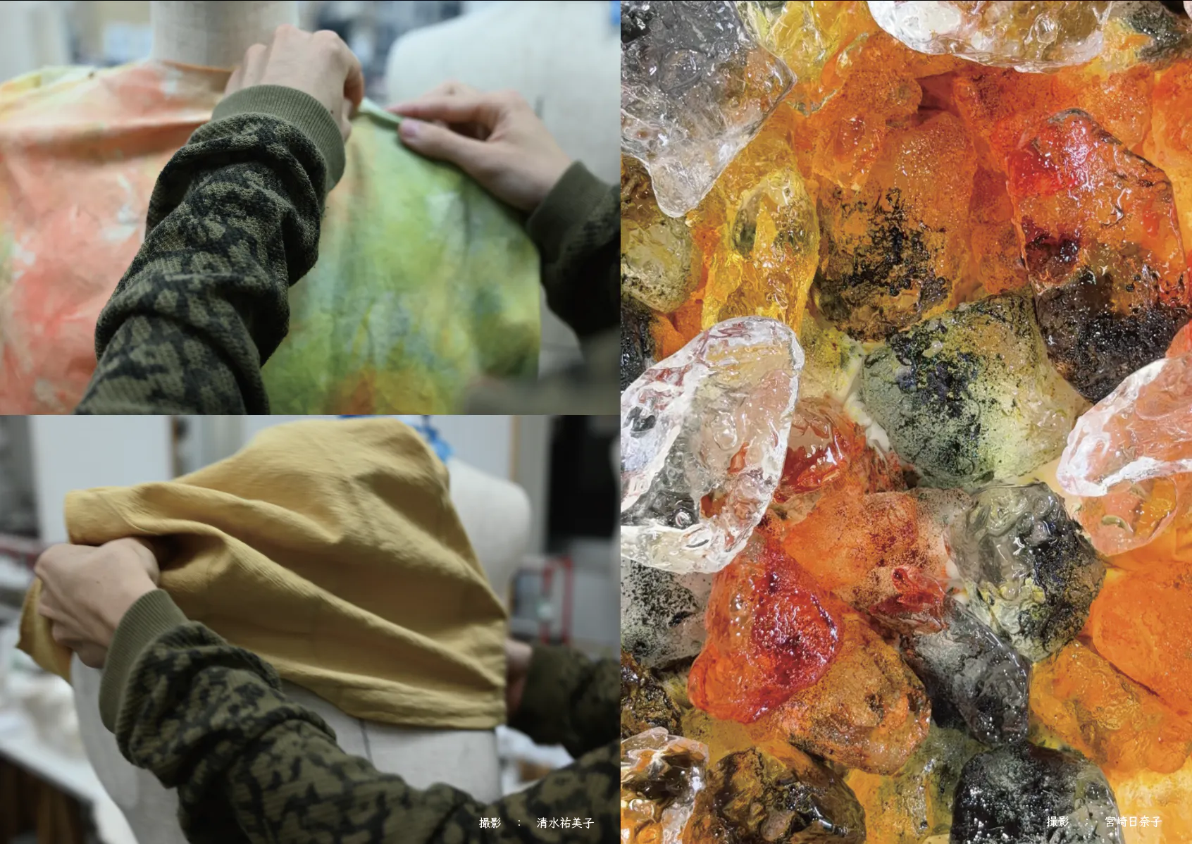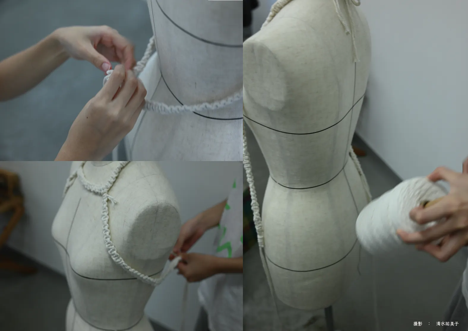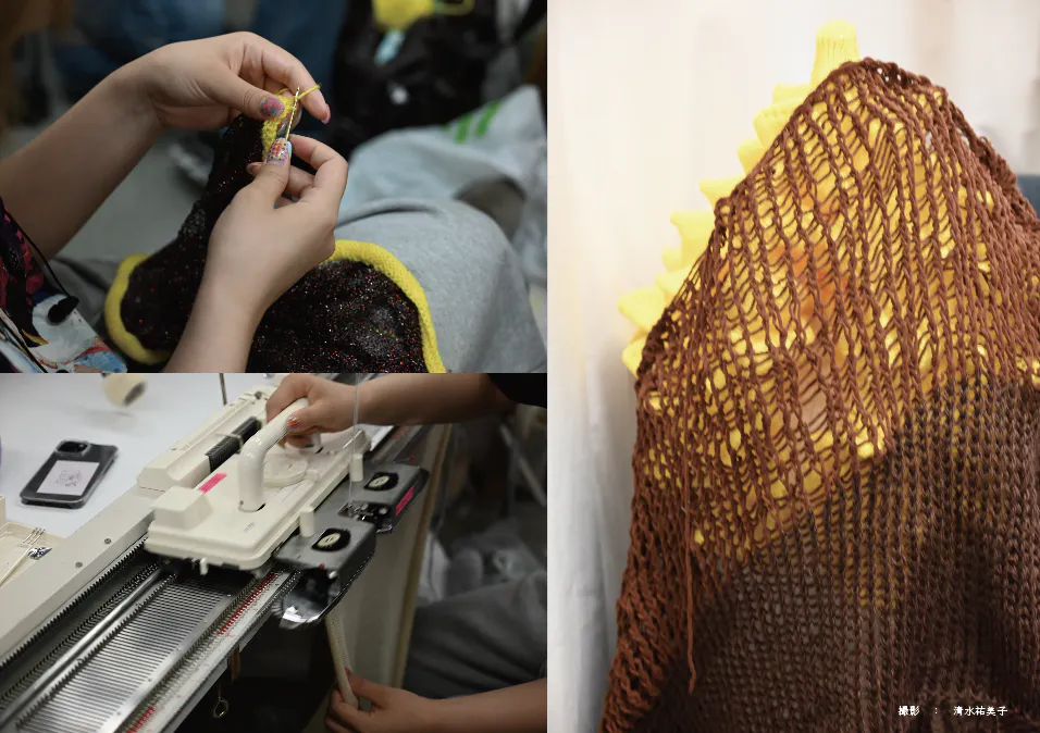 前述にもあります通り、本企画は毎年11月に開催している多摩美術大学芸術祭にてテキスタイルデザイン専攻の3年生を中心に運営している舞台公演です。我々は「染」「織」「編」「プリント」といった専門技術を学びながら、人と布の関係性を日々追求しております。