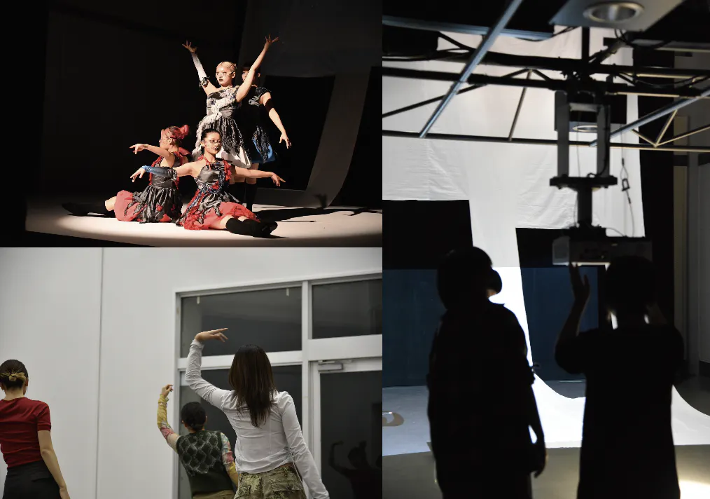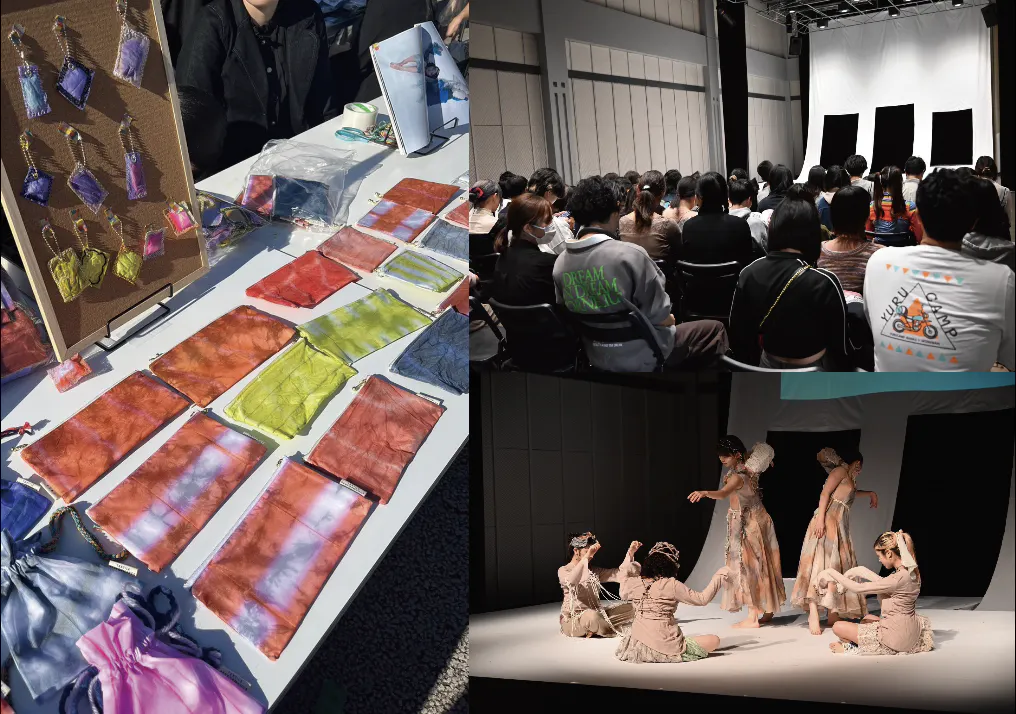 そして学んだことを表現する機会として、ファッションショーでも演劇でもない唯一無二のパフォーマンスを創り上げます。衣装、振付、音楽、映像、舞台設計まですべて学生が手がけ、他学科の学生も参加して魅力溢れる舞台を目指しております。
