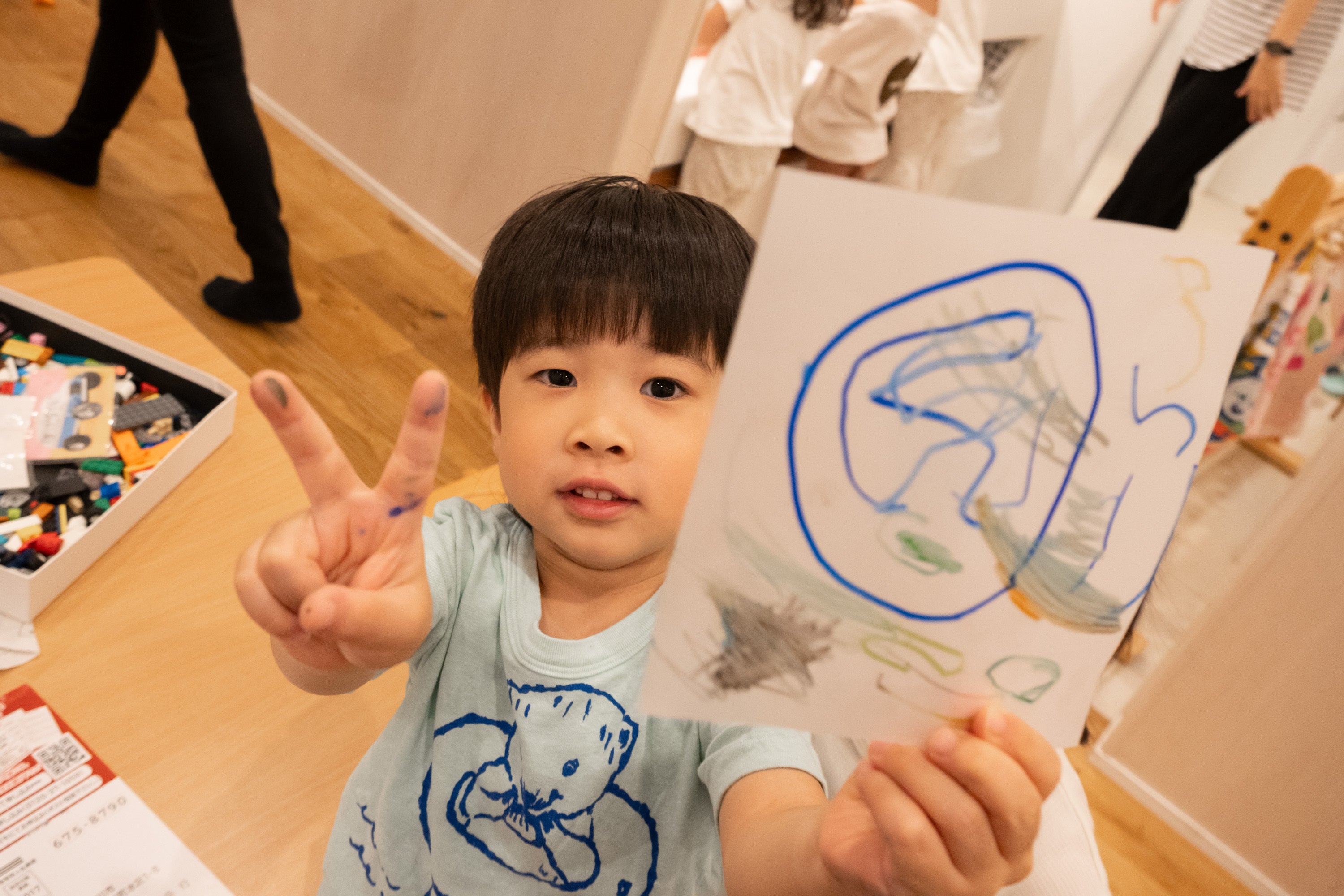 半透明のラワン紙に絵を描いてもらい、四角い窓を開けた竹ランタンに貼り付けて完成させます。