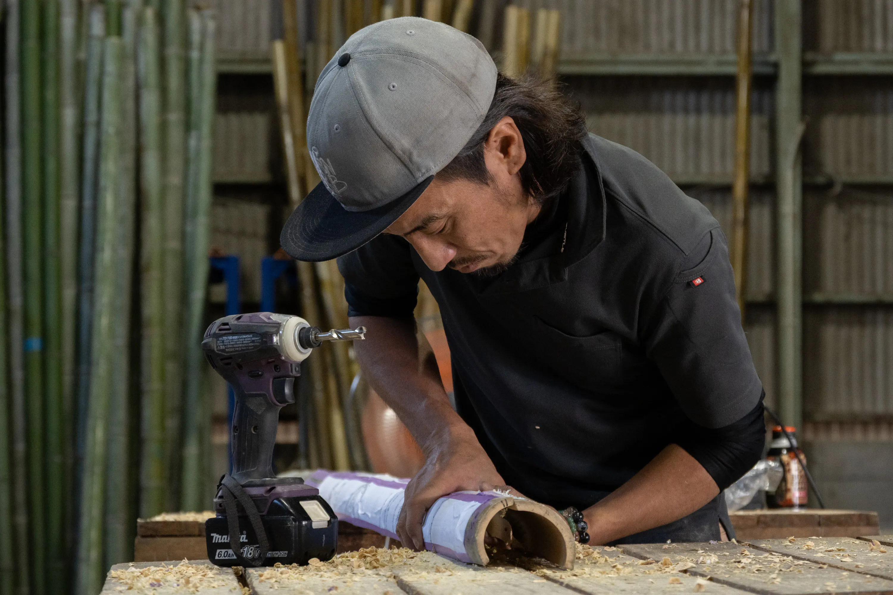 ひたすら穴を開け続けるBamboo fam.の荻内さん