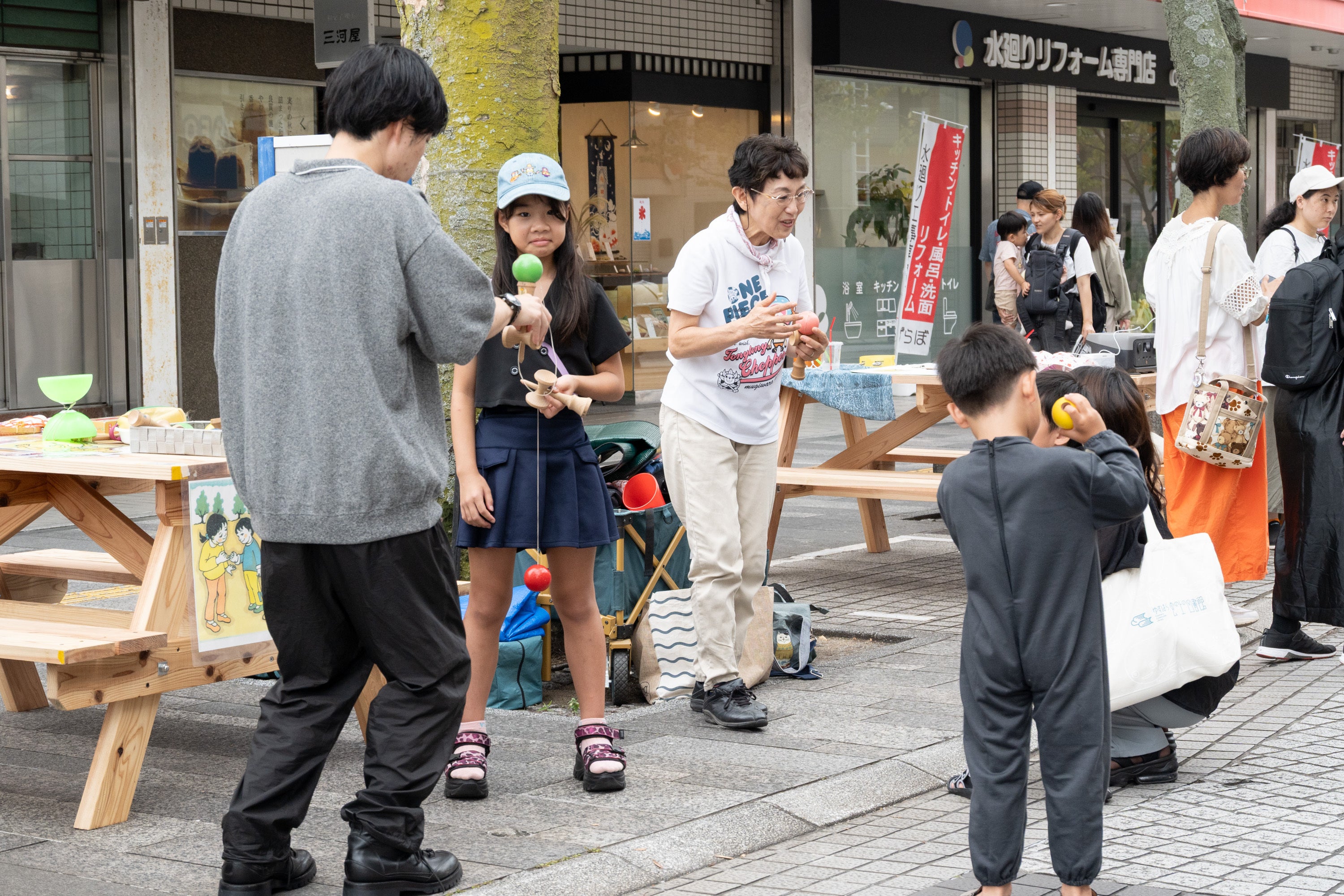 けん玉やコマ回しなど、多様な世代の方達が自然と参加し、ずっと人が集ってやまないゾーンになっていました。そのほかにもボードゲームや将棋も大盛り上がり!!