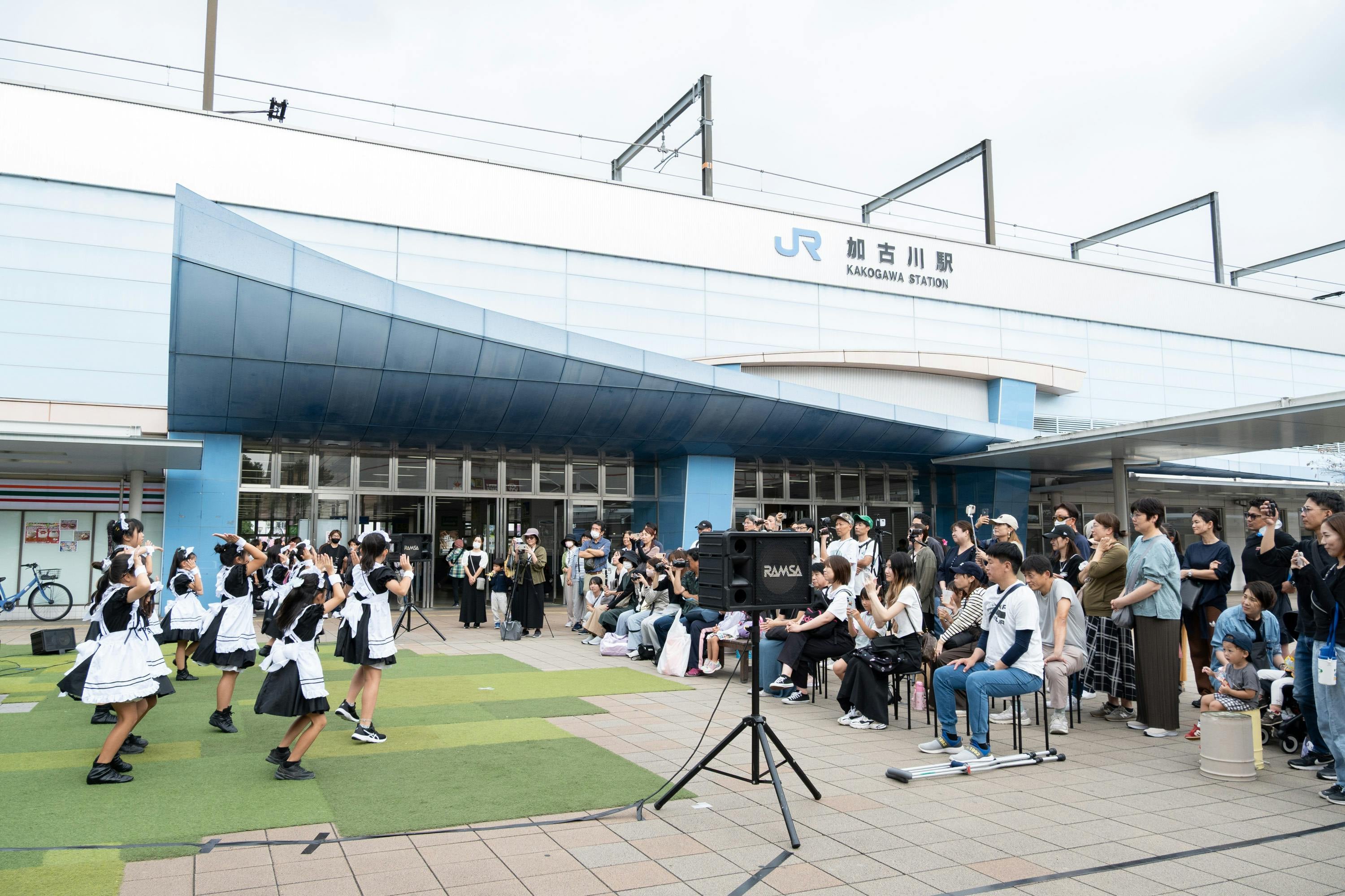 駅前広場では、路上ライブやダンスステージが繰り広げられ、本格的な機材も。