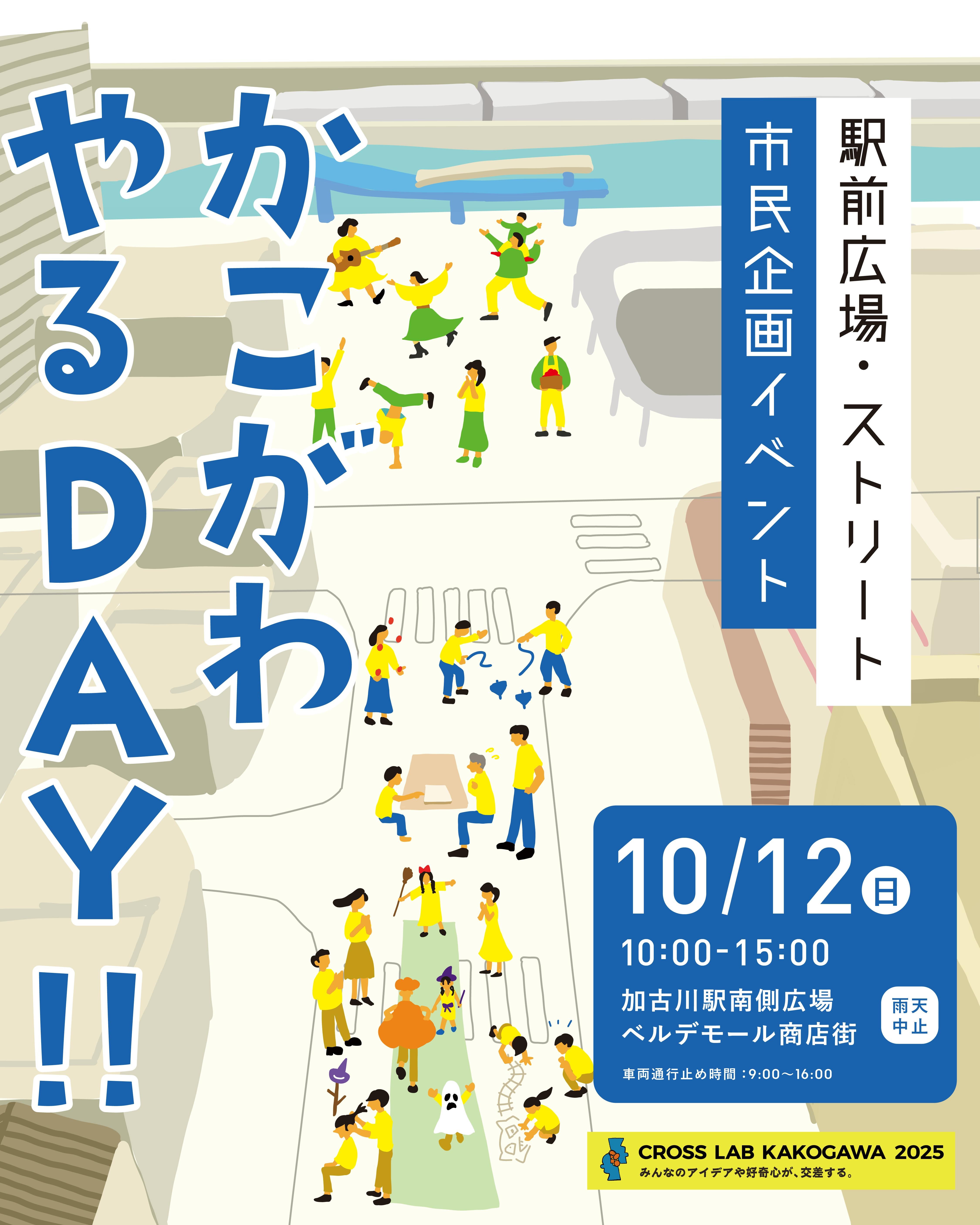 今日は、駅前広場とベルデモール商店街を使って、まちの人が主体となって企画・実行した「かこがわやるDAY!」。(私たちシミンズシーズが事務局としてこちらの事業を進めています)
