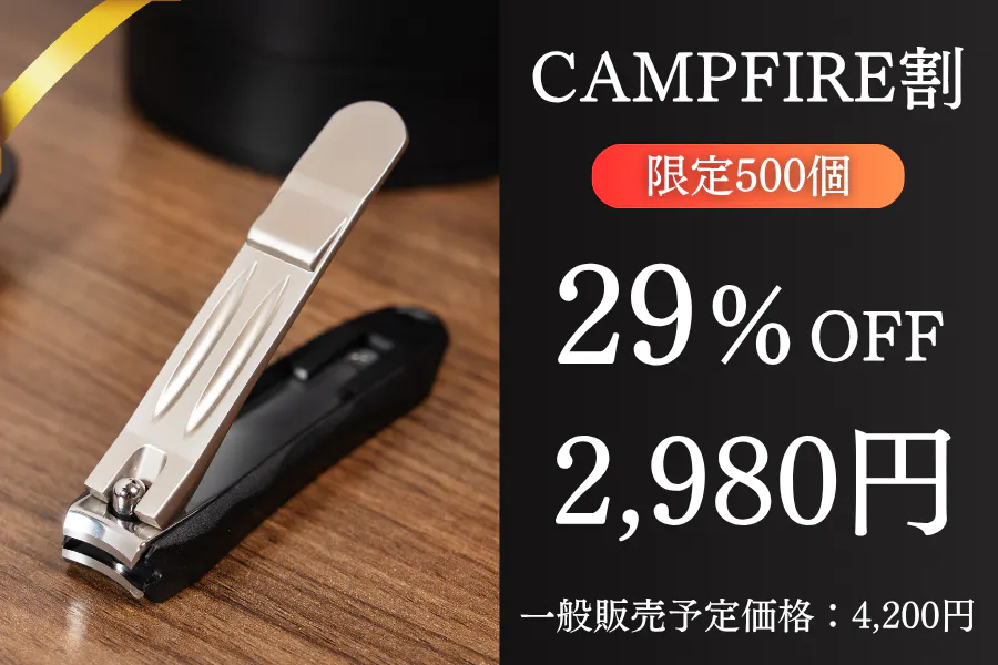 2025/08/06 13:15皆様この度は大変多くのご注文、ありがとうございます!高級爪切り「PREMIUM EDGE」のクラウドファンディングは、おかげさまで多くの方にご支持いただき、順調に進行しております。すでにご注文いただいた皆さま、誠にありがとうございます。本日でプロジェクト終了まで残り25日となりました。ご検討中の方も、ぜひこの機会にご覧いただき、毎日使う道具に“ちょっといい選択”を取り入れてみてはいかがでしょうか。引き続き、数量限定の先着割引プランもご用意しております。特別価格でご購入いただけるこのタイミングを、ぜひお見逃しなく!引き続き、応援よろしくお願いいたします! もっと見る