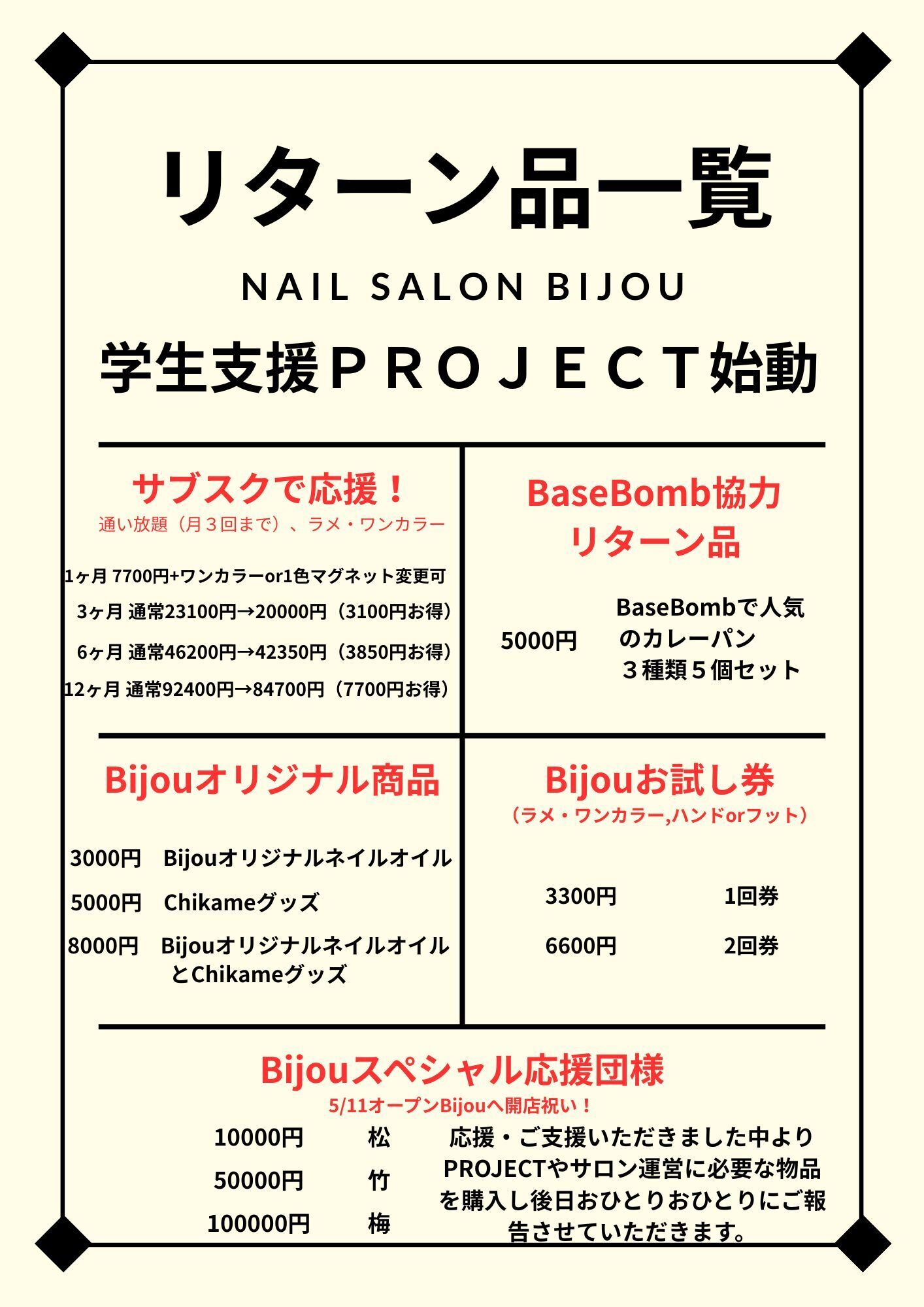 このプロジェクトを通じて、私たちはサロン勤務未経験の学生によるPOPUPステューデントサロンをオープンし学生達の就職率を上げると共により多くのお客様にネイルの魅力を伝えていきたいと考えています