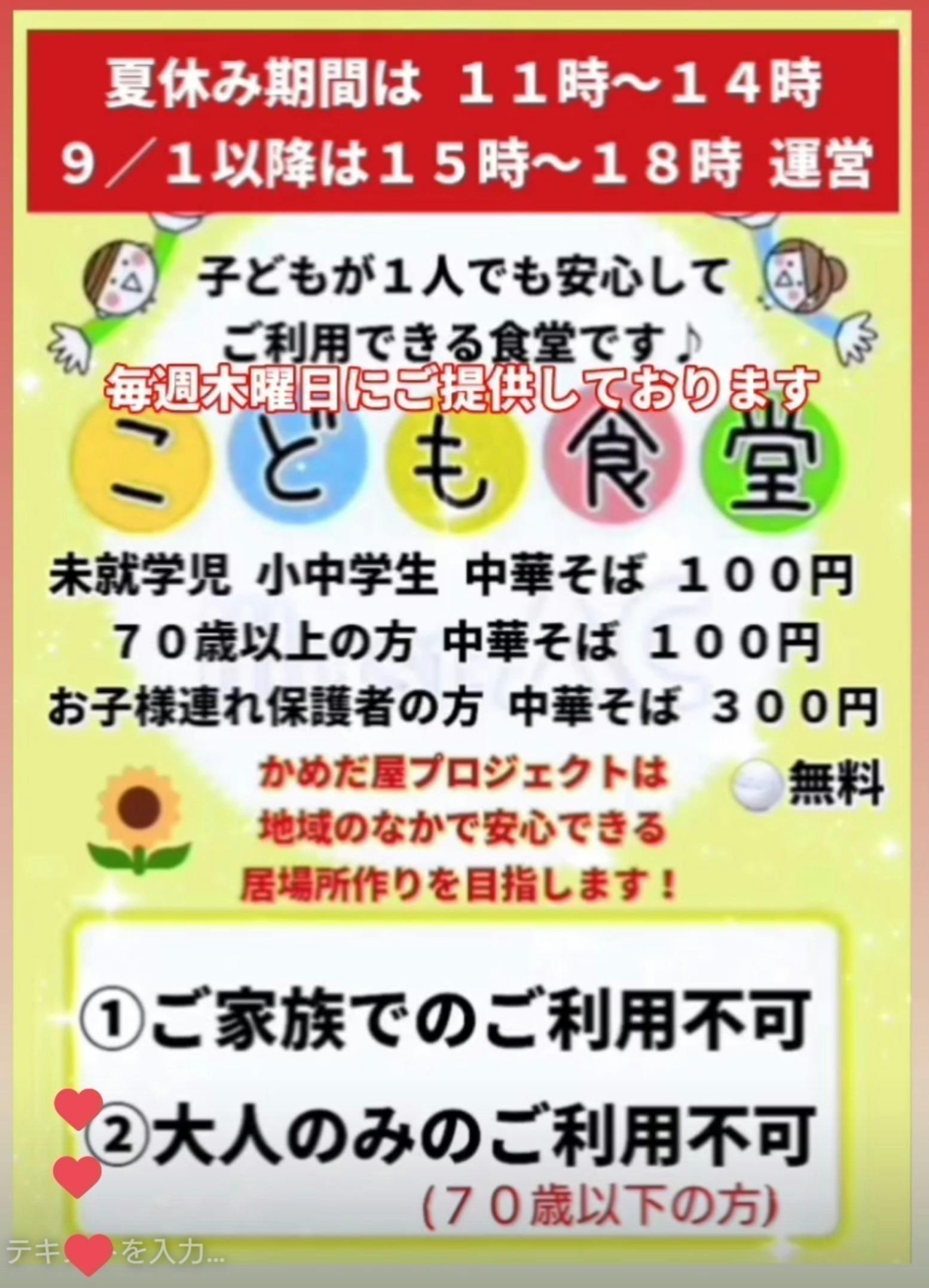 そんな当時を思い浮かべながら、今は私が子供達にお腹いっぱい食べて笑顔になってほしいと、麺の蔵かめだ屋のオープンと同時に子ども食堂を始めました。子ども食堂も噂が拡がり軌道に乗り始めてきた矢先、度重なる材料費高騰。