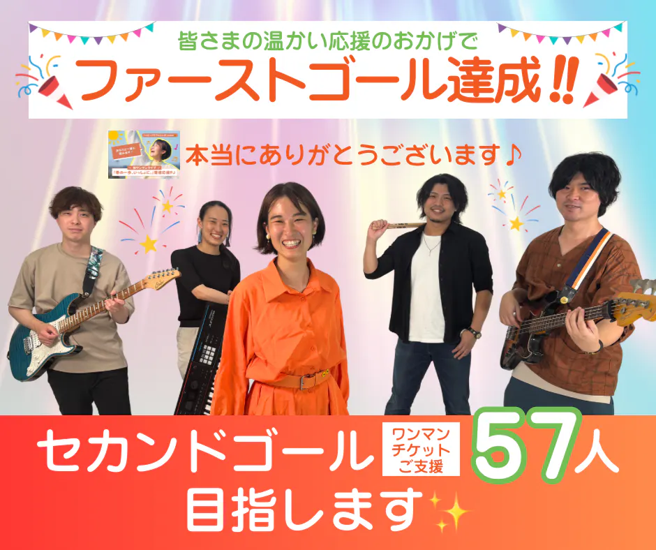 【ワンマンLIVEチケットご支援57人】を目指します!